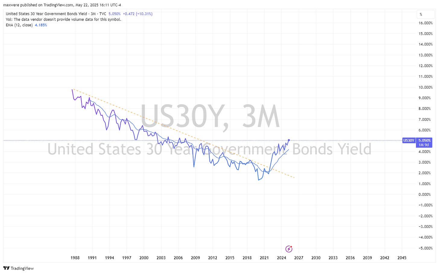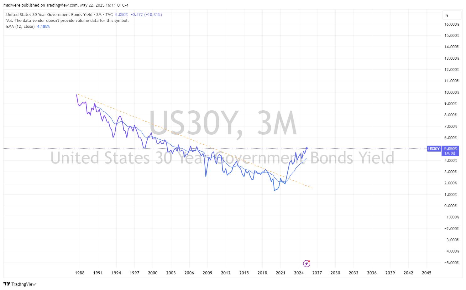 The shape of long duration treasuries suggests; yields move much higher. This is consistent with macro and current state of global debt, supply and demand. We are early.