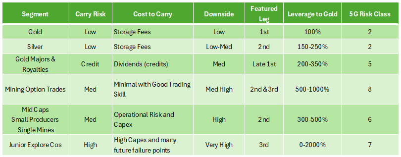 Below is a summary of when to look for higher optionality opportunities. The featured leg is very approximate and only gives an indication of what types of opportunities to be looking for when. I’m of the opinion that we are late in the first leg of 3 leg bull market and Silver (all secondary PMs), mid-caps and near-term developers and options plays on the majors may be the highest risk reward plays in the near future. Keep your eyes peeled.