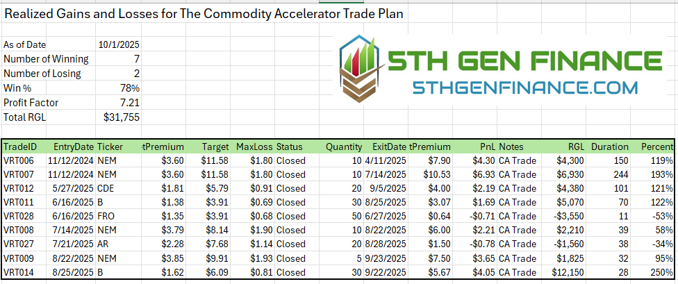 Once you learn the complicated parts, the rest is just carrying the bags! These are the results of the premium commodity accelerator trade alerts through 3Q.