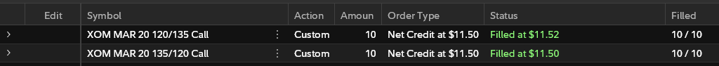 Bulletin: Close XOM Call Spread!Robert MaxwellJan 27, 2026∙ Paid3ShareLimit sell XOM 120/135 Call spread at $11.50Entry: $3.51 (9/29/25)Exit: $11.51 (1/27/26)Profit: $8Gain: 228%Continue reading this post for free, courtesy of Robert Maxwell.Claim my free postOr purchase a paid subscription.PreviousNext