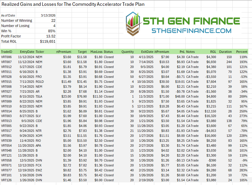 Commodity Accelerator Update 3-13Update for paid members.Robert MaxwellMar 13, 2026∙ PaidShareBecome a paid member to see all the entries and exits. There are currently 13 positions open and 1 shopping. Cheers!Continue reading this post for free, courtesy of Robert Maxwell.Claim my free postOr purchase a paid subscription.Previous