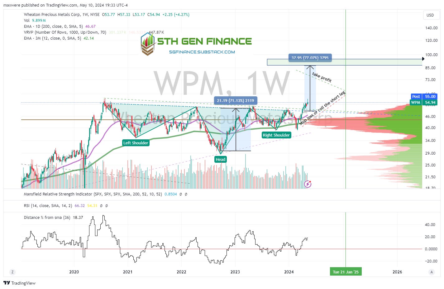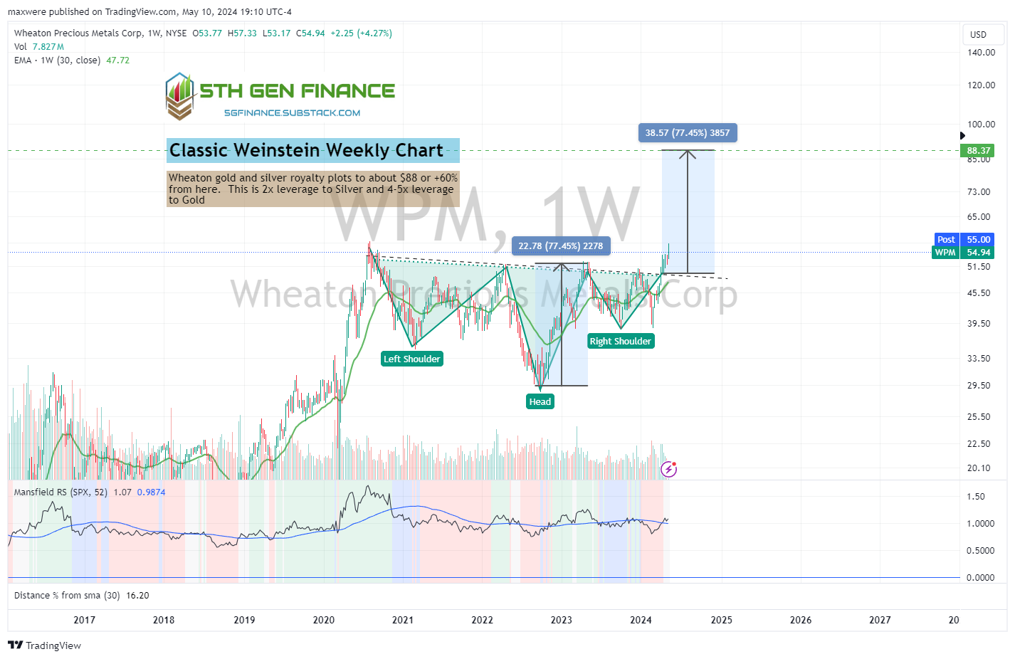 Now royalty darling Wheaton Precious Metals… We still have 60% move or so in the 2024 tank compared to 30% silver.