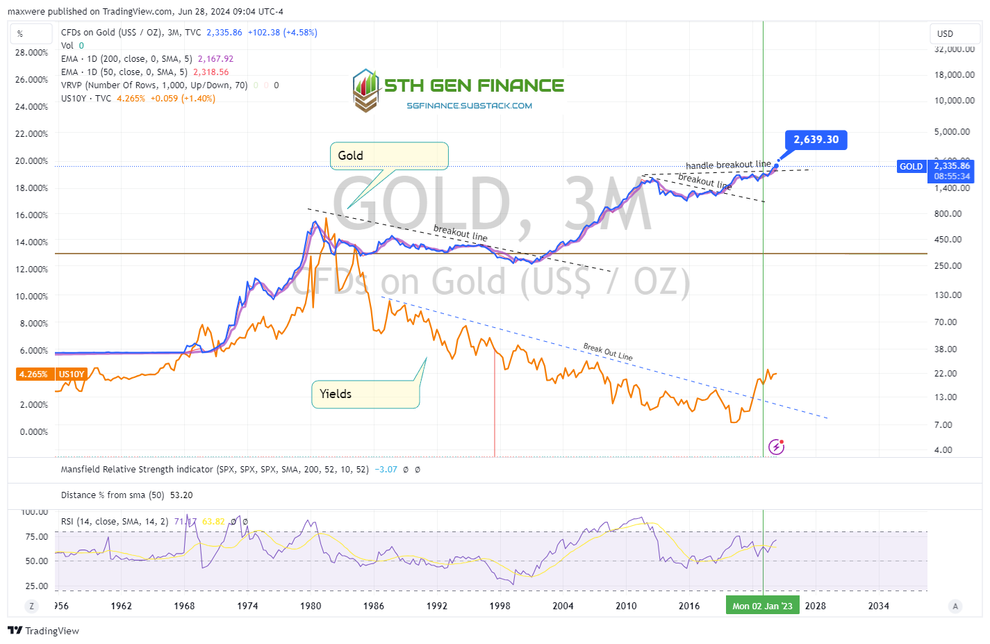 There is a myth among investors that gold price trades in inverse fashion to bond yields. Under this theory Gold and Treasury securities are both considered competing "risk off" assets. So long as both are considered truly risk-free assets, the one with the highest yield is preferred. Since gold's yield is 0 (unless you are lending your gold), that’s typically treasuries. That's a finance paradigm… under normal conditions.