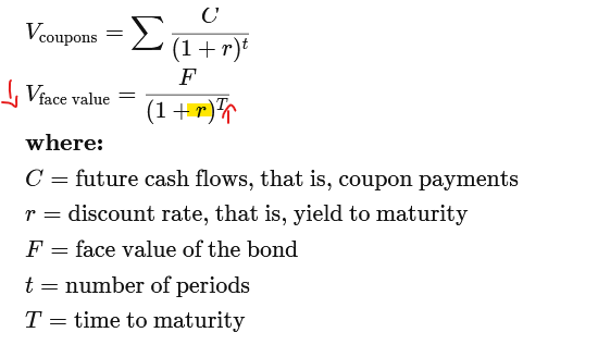 Relax, all you really need to know is where "r" is in the formula. If r (rates) is moving up, bond values are moving down.
