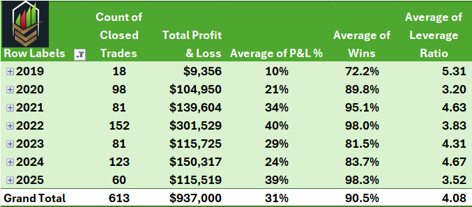 Using the Wisesheets API call for options, we pulled the nearest expiration date at least 90 days after entry and the implied volatility of the at the money option both an entry and exit (Verified Investing only provides the closed trades). From there we assume a Black-Scholes calculation of the position both at entry and exit. This was all performed in MS excel. Trades such as crypto, stocks with no options and stocks priced under $10 were removed before analyzing.