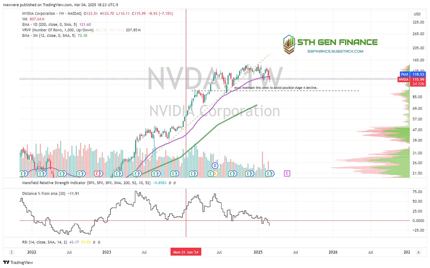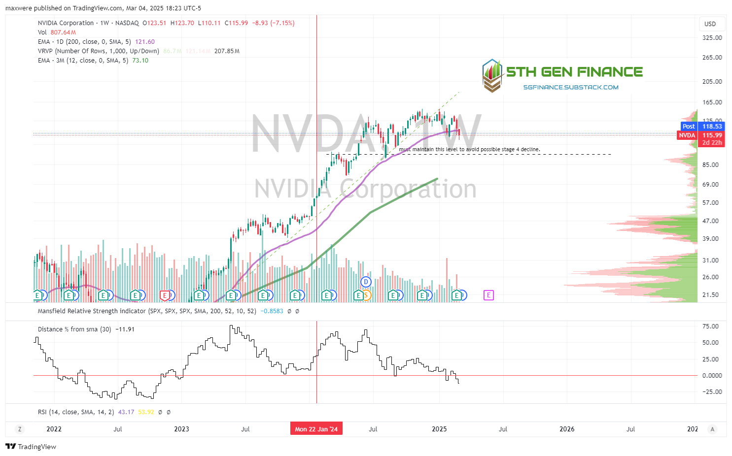 NVDA - looks like stage 3 for now. It must stay above the $95 area to avoid major fall.