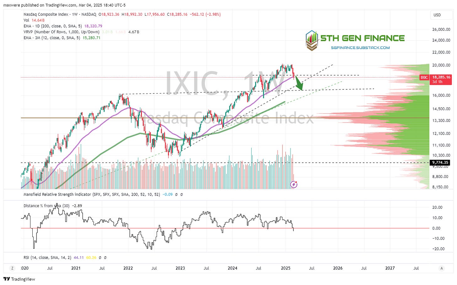 Is a major stage 4 move on the horizon? Short answer is, it doesn’t look like it. A short term correction of 20% (+/-) seems more likely. That could morph into something severe, but I’m not sure the clock reads 11:59 PM here… YET.