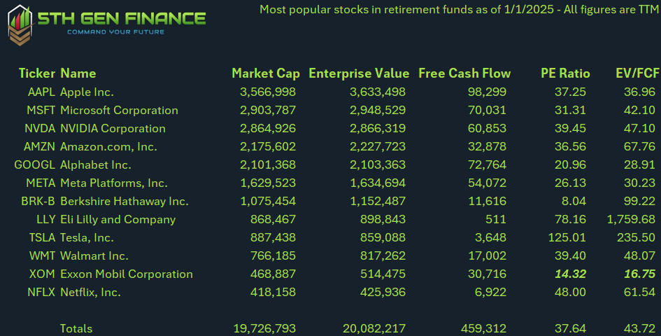 the total EV and Market Cap of 12 stocks is 20 trillion dollars