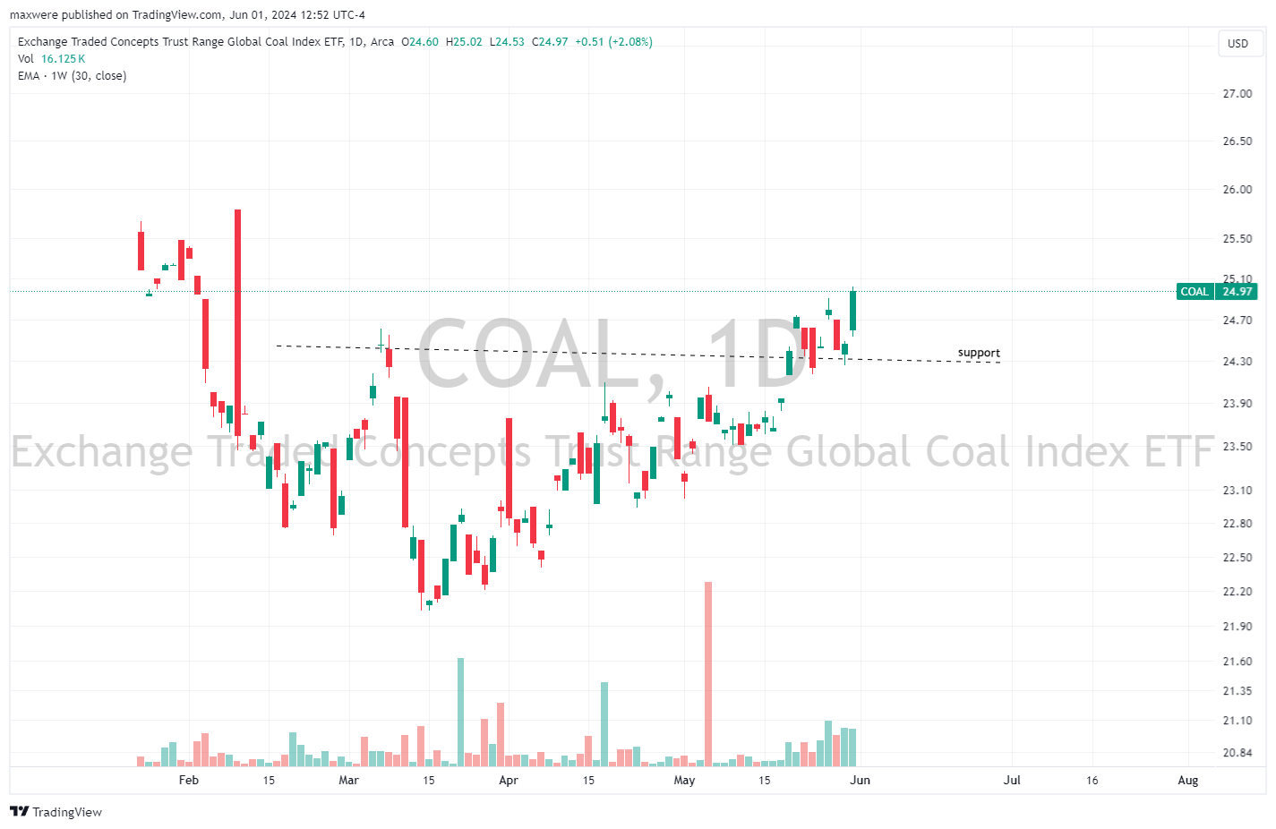 Cons: Difficult to segment Met and Thermal exposure. The ETF is new, so the chart isn’t much use on high time frame. You must gauge overall market breadth.