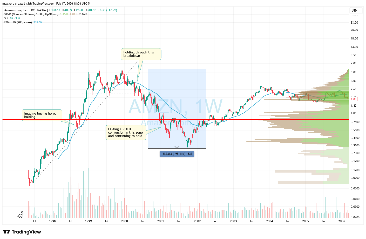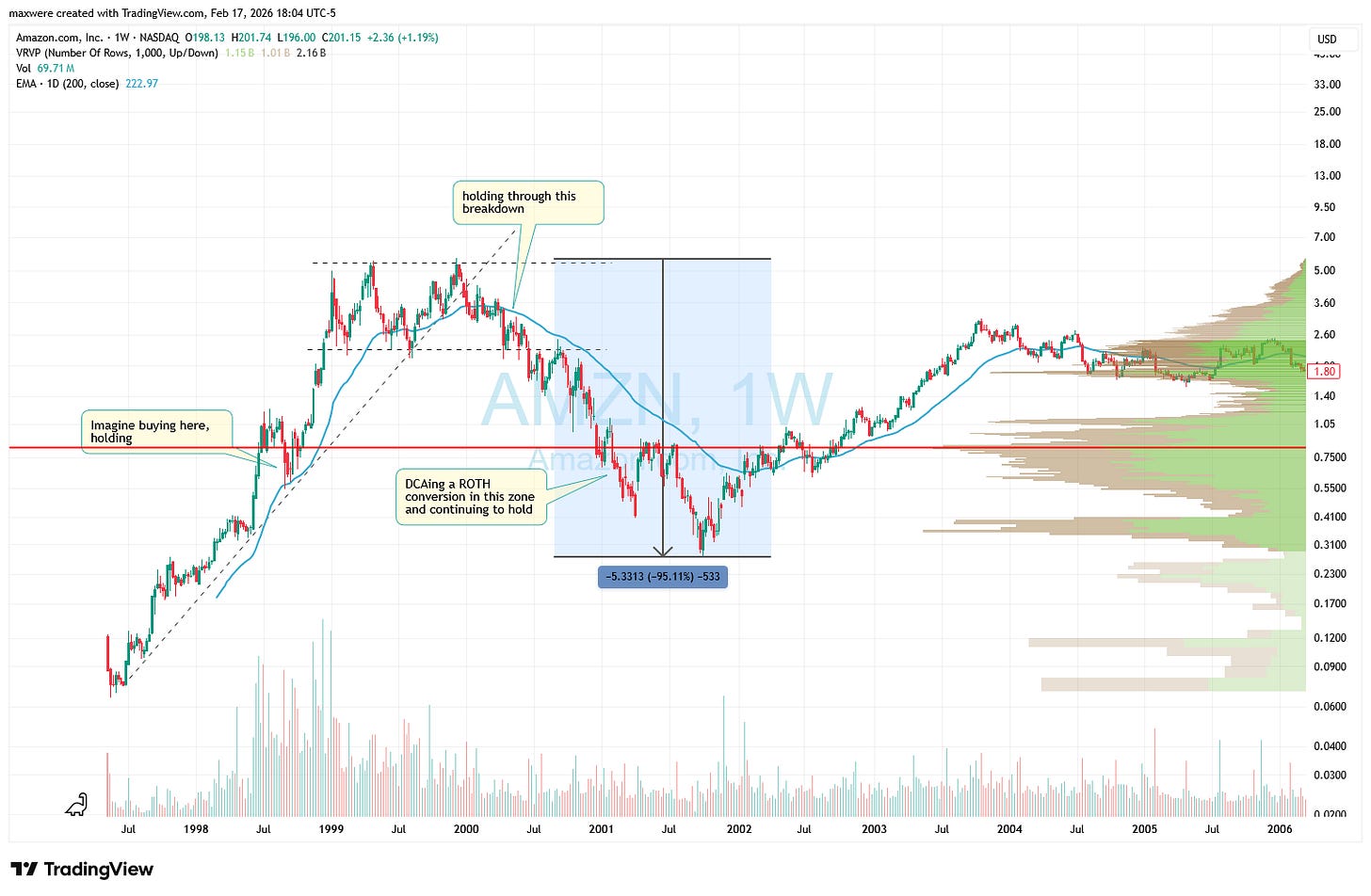 If you had done one of these kinds of maneuvers in AMZN 0.00%↑ or PDN 0.00%↑ or countless other survivors of the busts, you would virtually insulate yourself from the enormous capital gain burden. I was you that put the money at risk, did the research, tolerated the downturns. Turn the downturns into additional torque. Prepare to convert!