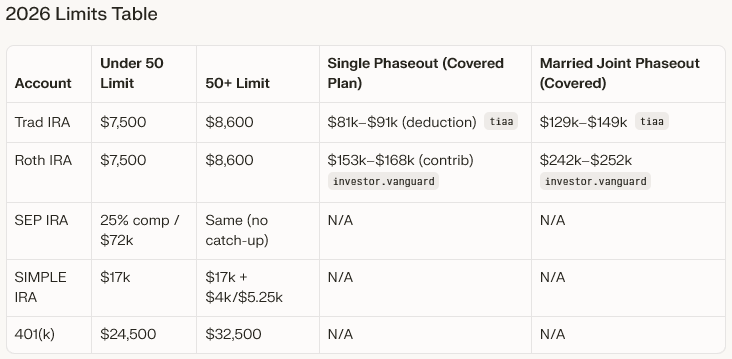Trad IRS: https://www.irs.gov/retirement-plans/traditional-iras